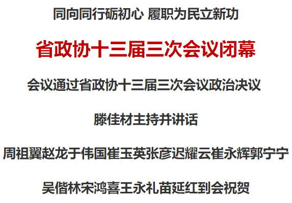 16日上午,省政协十三届三次会议圆满完成各项议程,在福州闭幕。
