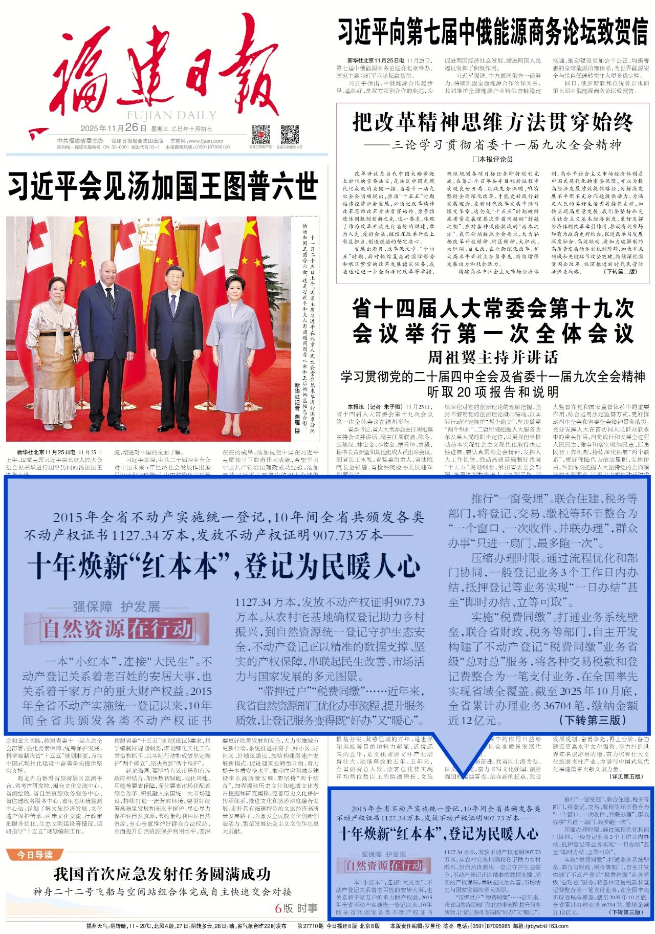 一本“小红本”,连接“大民生”。不动产登记关系着老百姓的安居大事,也关系着千家万户的重大财产权益。2015年全省不动产实施统一登记以来,10年间全省共颁发各类不动产权证书1127.34万本,发放不动产权证明907.73万本。从农村宅基地确权登记助力乡村振兴,到自然资源统一登记守护生态安全,不动产登记正以精准的数据支撑、坚实的产权保障,串联起民生改善、市场活力与国家发展的多元图景。