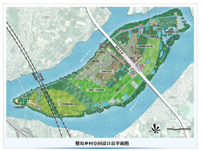 规划采用“策规一体化”的方式,以“多规合一”实用性村庄规划为核心,突出“策划先行、法定规划保障”的目标,确定“甜源绿岛·沙洲公社”的总体定位,重点打造生态、农业、社区、数字和治理五大场景。