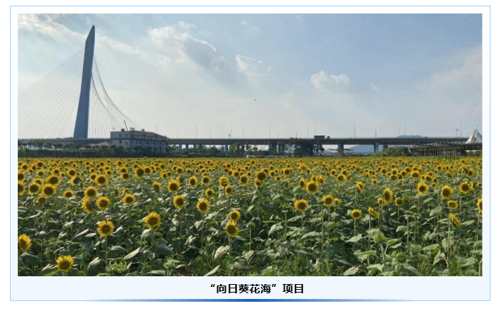 规划明确以智慧农业、循环农业和社区农业为方向,创新实施“稻田+”模式。通过“稻蛙共生”立体种养模式,一期建成的“稻蛙空间”项目,实现“一水两用、一田双收”的生态循环农业。同时,在沙洲岛特大桥南侧60亩稻田创新实行“一季水稻、两季赏花”轮种模式,成功打造“向日葵花海”景观,形成生态效益与经济效益双赢的局面。