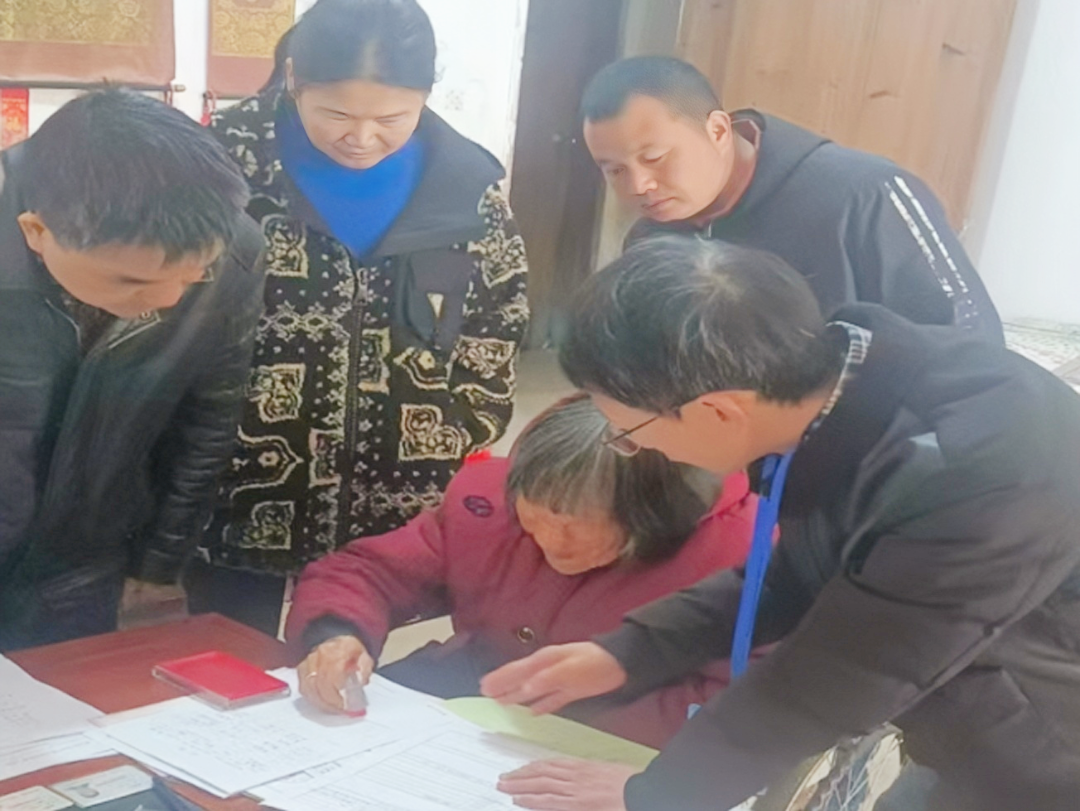近日,长汀县自然资源局不动产登记中心窗口接到群众特殊求助,表明家中90多岁高龄的老人因行动不便,远在上杭县南阳镇,无法亲自前往窗口办理遗产继承业务。得知情况后,不动产登记中心迅速行动,安排工作人员跨县前往,在老人家中完成了遗产继承的相关手续。