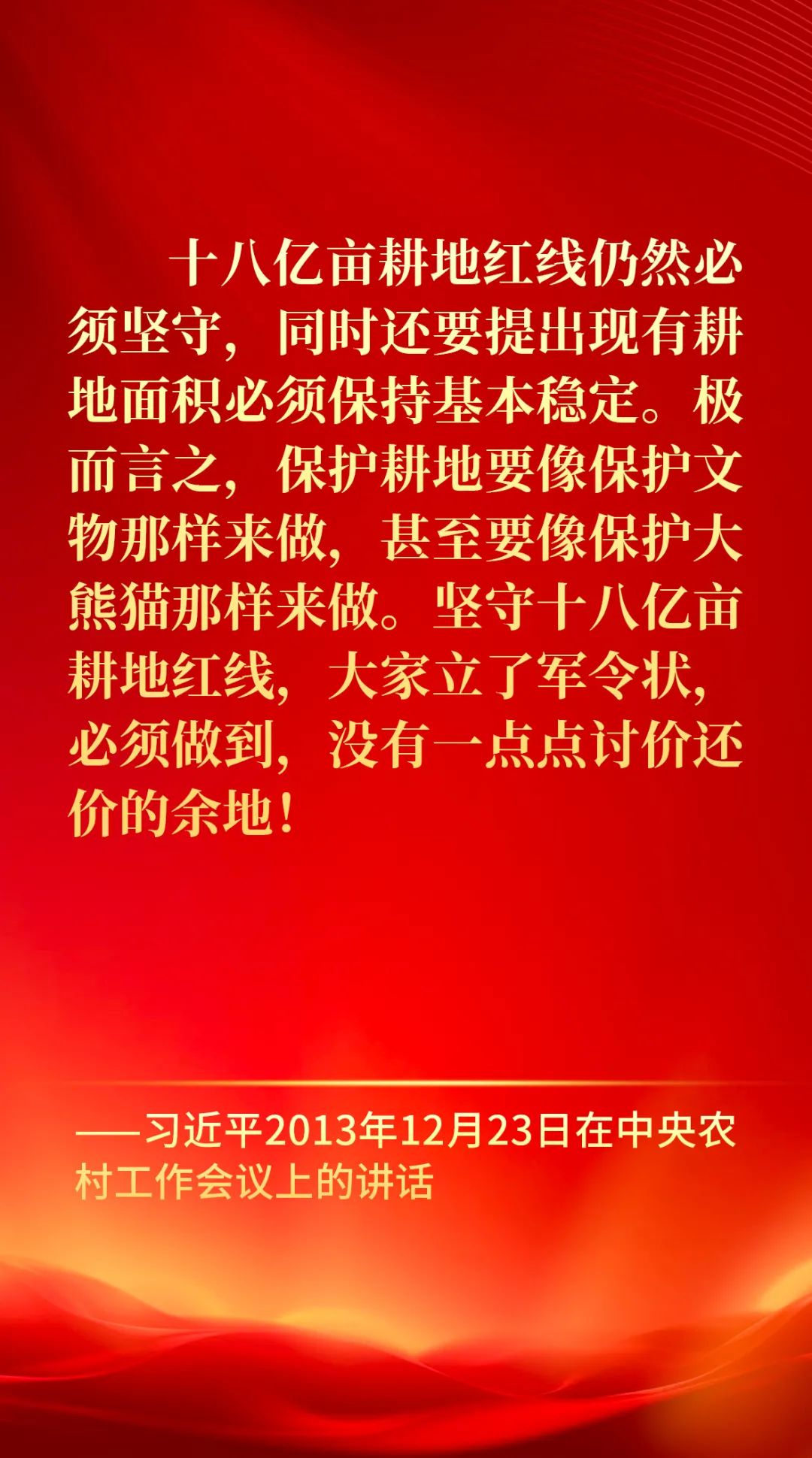 十八亿亩耕地红线仍然必须坚守,同时还要提出现有耕地面积必须保持基本稳定。极而言之,保护耕地要像保护文物那样来做,甚至要像保护大熊猫那样来做。坚守十八亿亩耕地红线,大家立了军令状,必须做到,没有一点点讨价还价的余地!