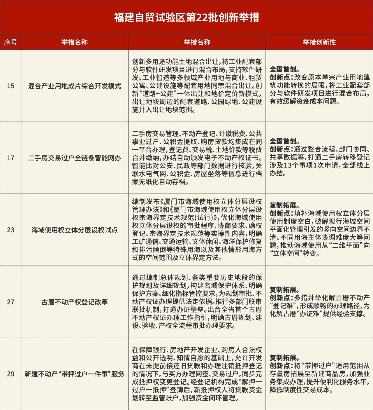 日前,福建自贸办公布福建自贸试验区第22批创新举措评估结果,共有33项创新成果入选。其中,省自然资源厅推选的5项创新举措入选。