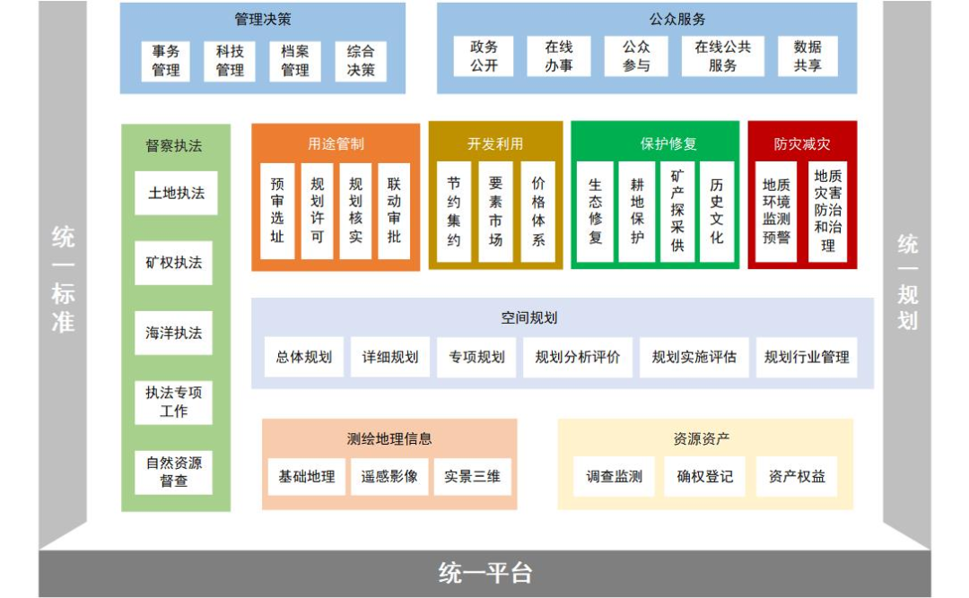 坚持一体化建设,系统优化再造业务、数据、应用技术三大顶层架构,梳理形成覆盖资源资产、空间规划、用途管制等10个业务域、32个业务子域、153项业务功能的省自然资源信息化体系,推动自然资源业务从分散运行向一体化协同转变。